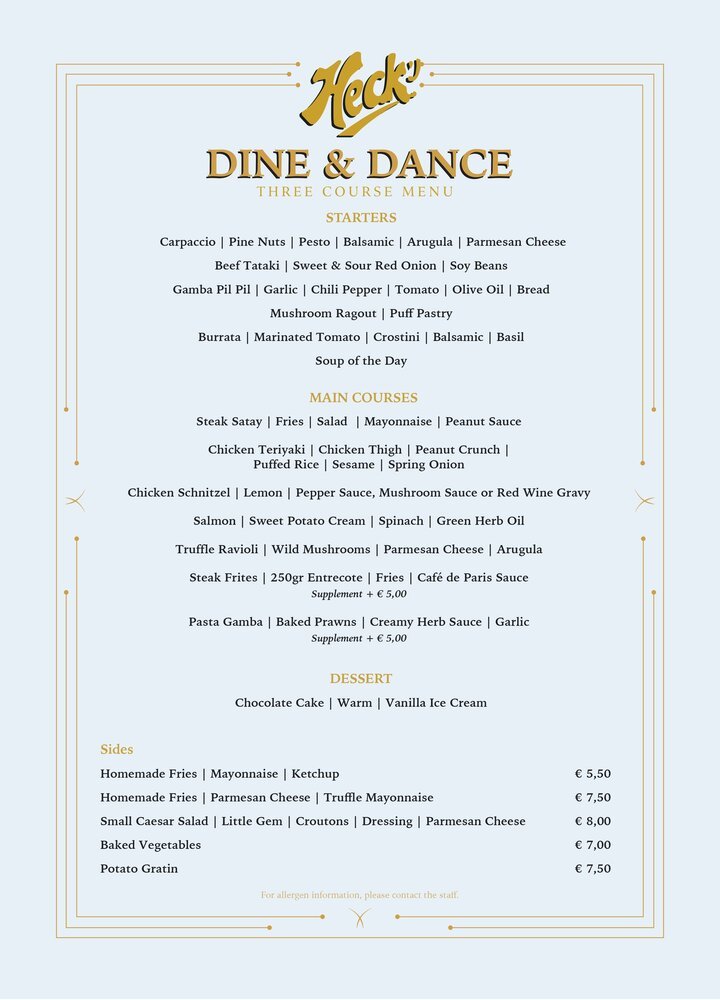 Together with the famous Escape Club (located directly next to our restaurant), Heck's offers you a Dine & Dance arrangement.