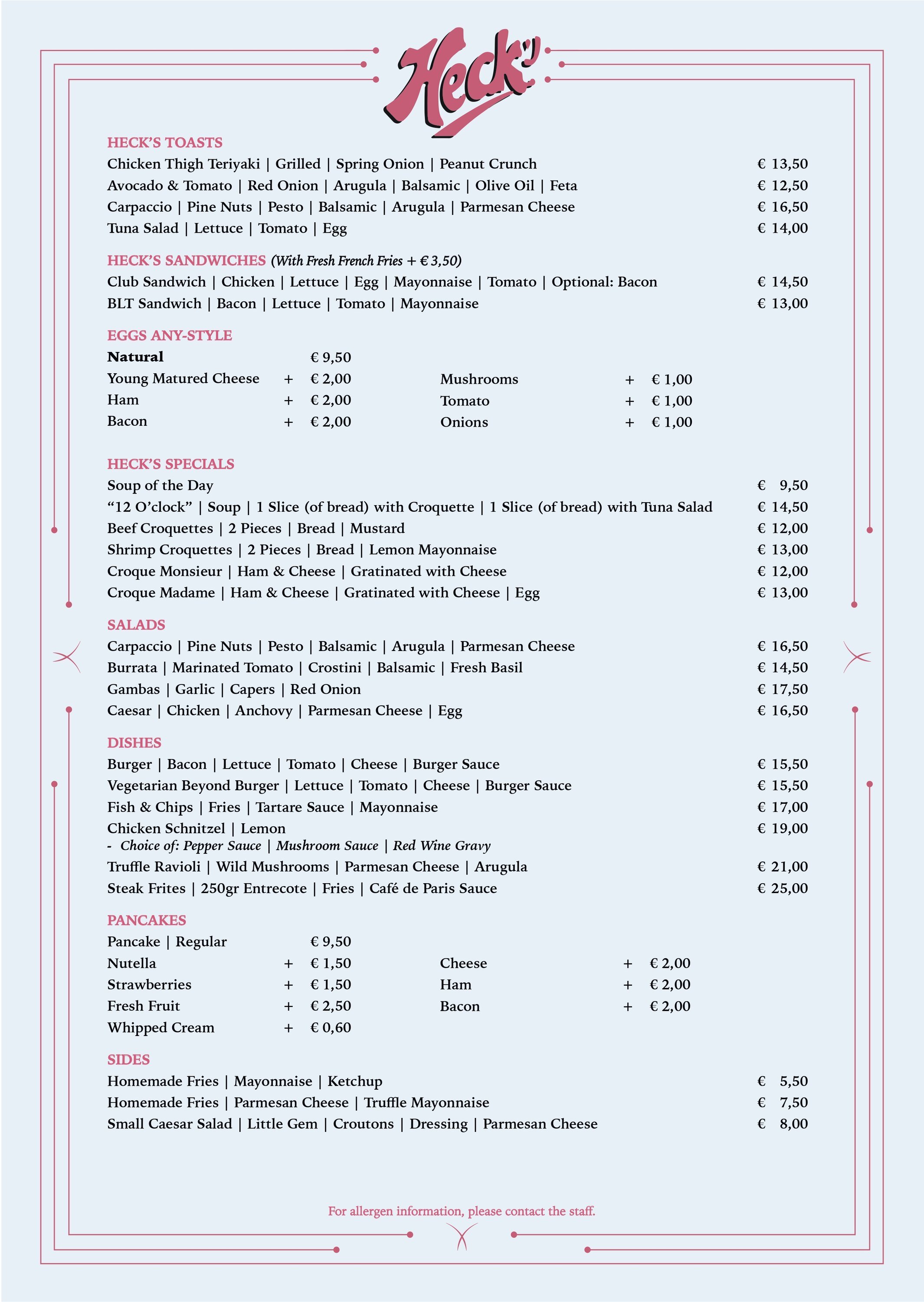From sandwiches and salads to warm dishes — enjoy a relaxed lunch at Heck's Amsterdam with a view on the Rembrandtplein.